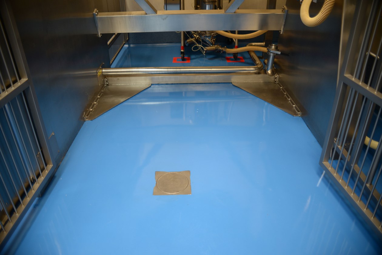 jointless coatings that are easy to sanitize. It is important to use skirting strips to stop bacterial proliferation in corners and at the points where the floor meets the walls. In the areas where washing operations are carried out, the floor-level