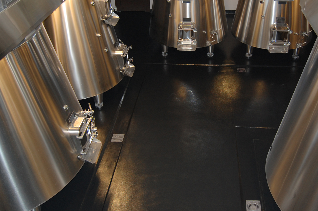 - non-slip solutions and jointless connection to the drainage systems boost safety in the presence of the water used for the constant washing operations in the tank and bottling zones